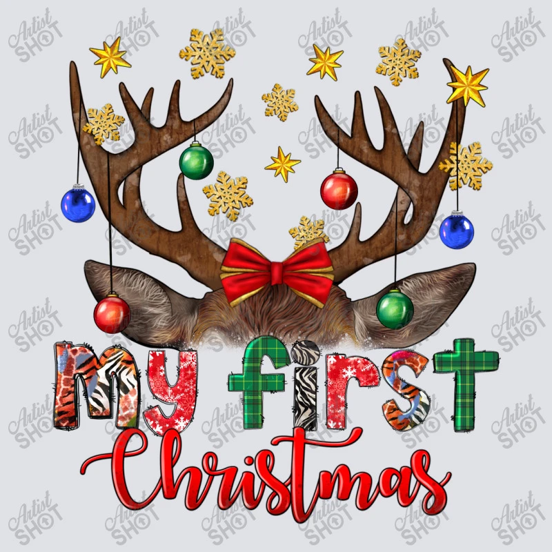 Digital printing is an amazing process that involves your artwork “My First Christmas With Reindeer” being processed by a computer and then printed directly onto the surface of your product. Digital printing is not a heat transfer or applique, as the ink directly adheres to the fabric of your shirt. Each printing process has its strengths, and our artwork team will weigh these when deciding which to use for your art.